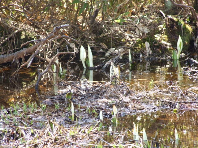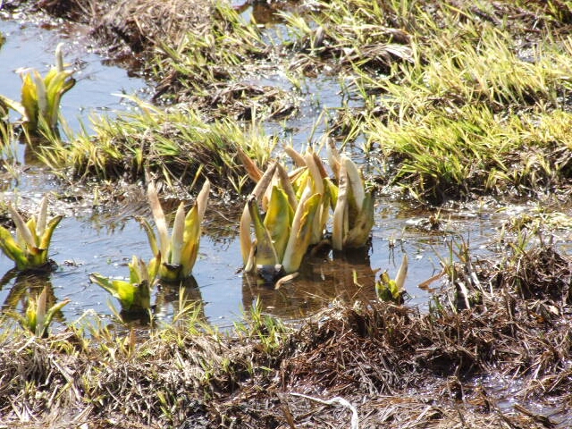定点観測の場所では小さな水芭蕉が見れます。
